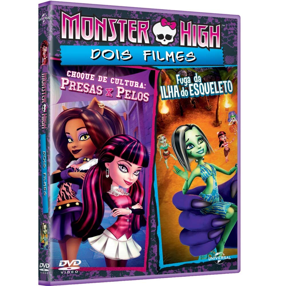 Bom hoje eu achei um vídeo,como se fosse uma propaganda de um novo DVD das Monster High(Só que está em Inglês).Esse DVD será 2 em 1,terá 2 filmes em apenas 1 DVD,o 1°filme é o "Choque de Culturas:Presas X Pelos",pelo o que eu entendi será uma briga entre os Lobos e os Vampiros...E o 2°filme é "A fuga da Ilha do Esqueleto".E tem lançamento previsto para dia 17/07 aqui no Brasil.Clique aqui e veja a "propaganda"